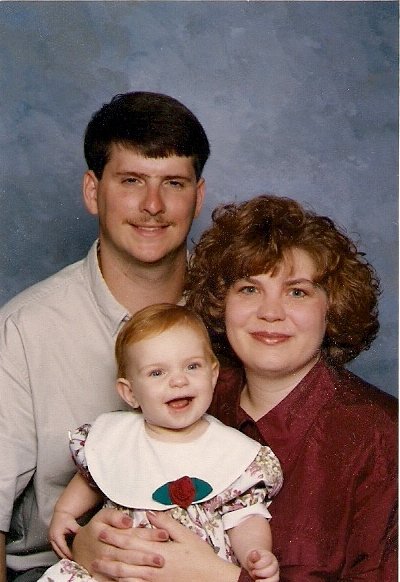 This was when dresses like that were in style, I had bright red hair and big blue eyes, Mom's HAIR was in style, and Dad, well, he had hair! :D